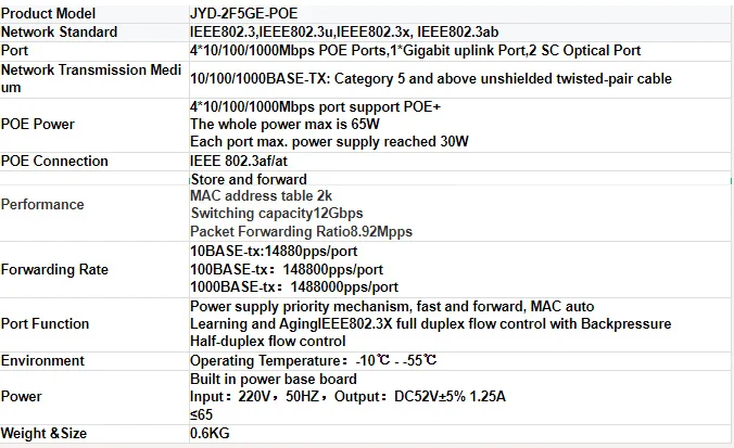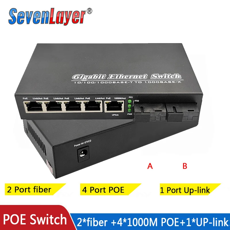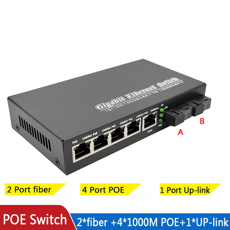 Switch 04P RJ45 GIGA PoE+ 01RJ45 UPLINK + 02 SFP SC-UPC A+B - A-B / SC-UPC - 2F5GE POE Switch - Garantia: 6 meses